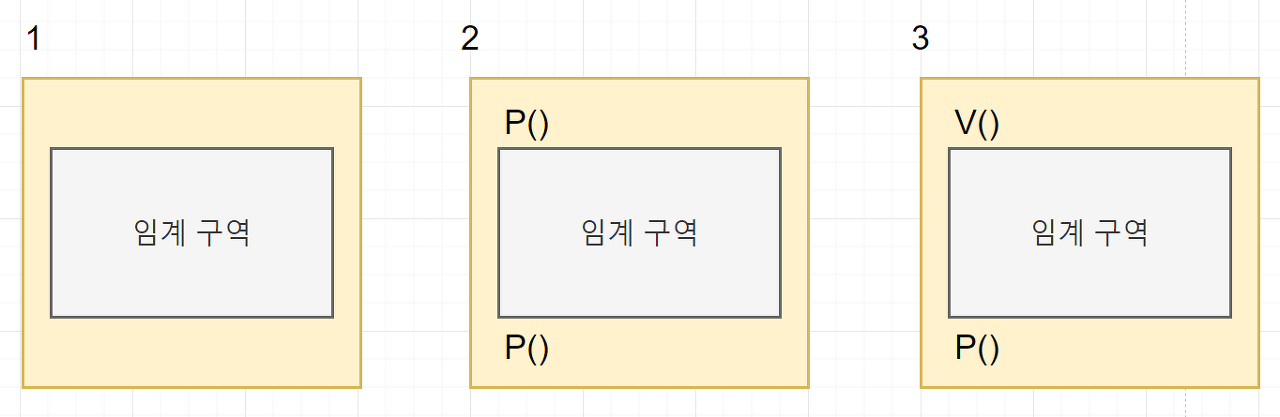 - 임계구역으로 지정된 변수나 자원에 접근하고자 하는 프로세스는 직접