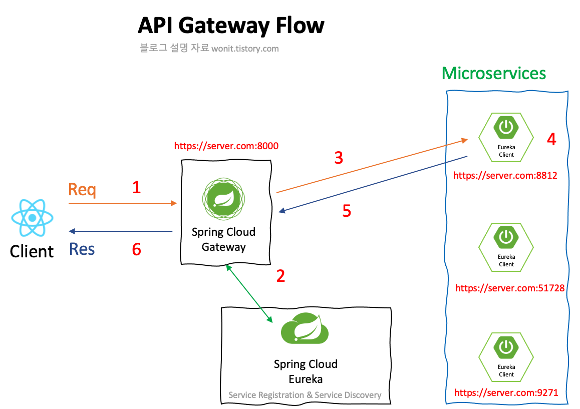 API Gateway는 하나의 모든 클라이언트의 요청이 하나의 서버로 들어와 해당 서버에서 요청이 정제되거나 조작되어 각자 목적에 맞는 서비스를 찾아가도록 도와준다.