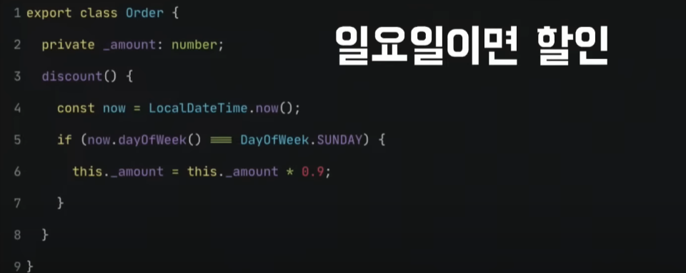 위의 코드는 현재 시간을 받아서 현재 요일이 일요일이면 10% 할인을 해주는 코드이다.