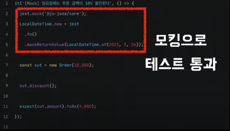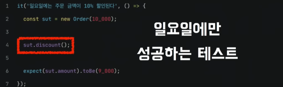 이렇게 일요일에만 성공을 하는 테스트를 작성할 수 밖에 없게 될 것이다.