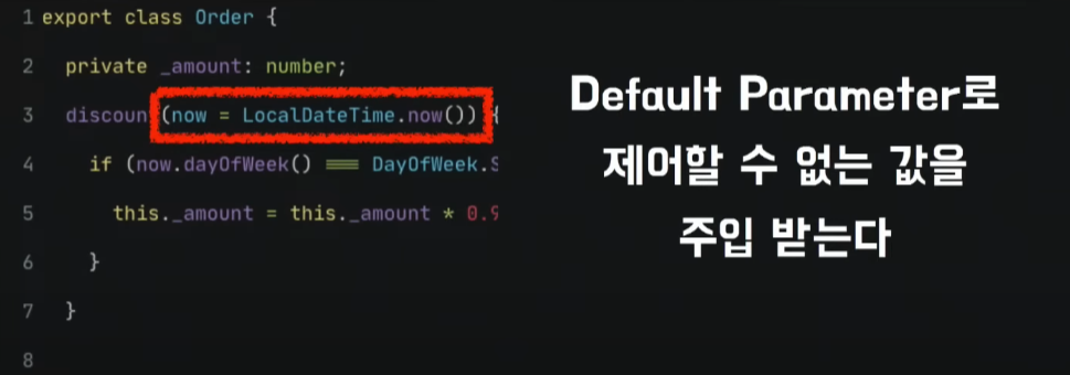 왤까? 이유는 현재시간을 나타내는 LocalDateTime.now()는 제어할 수 없는 것이기 때문이다.