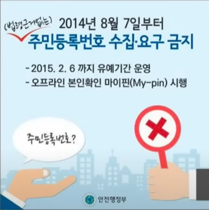그러던 중 갑자기 2014년 중 주민번호를 무분별하게 수집하지 말라는 정부 지침이 내려왔다.