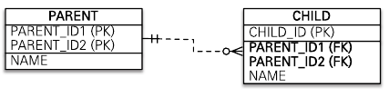 Parent.id1과ParentId.id1, 그리고Parent.id2와ParentId.id2가 같다.