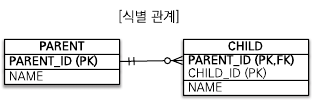 - 식별 관계는 부모 테이블의 기본 키를 자식 테이블의 기본 키를 사용하므로 비식별 관계보다 테이블 구조가 유연하지 못하다.