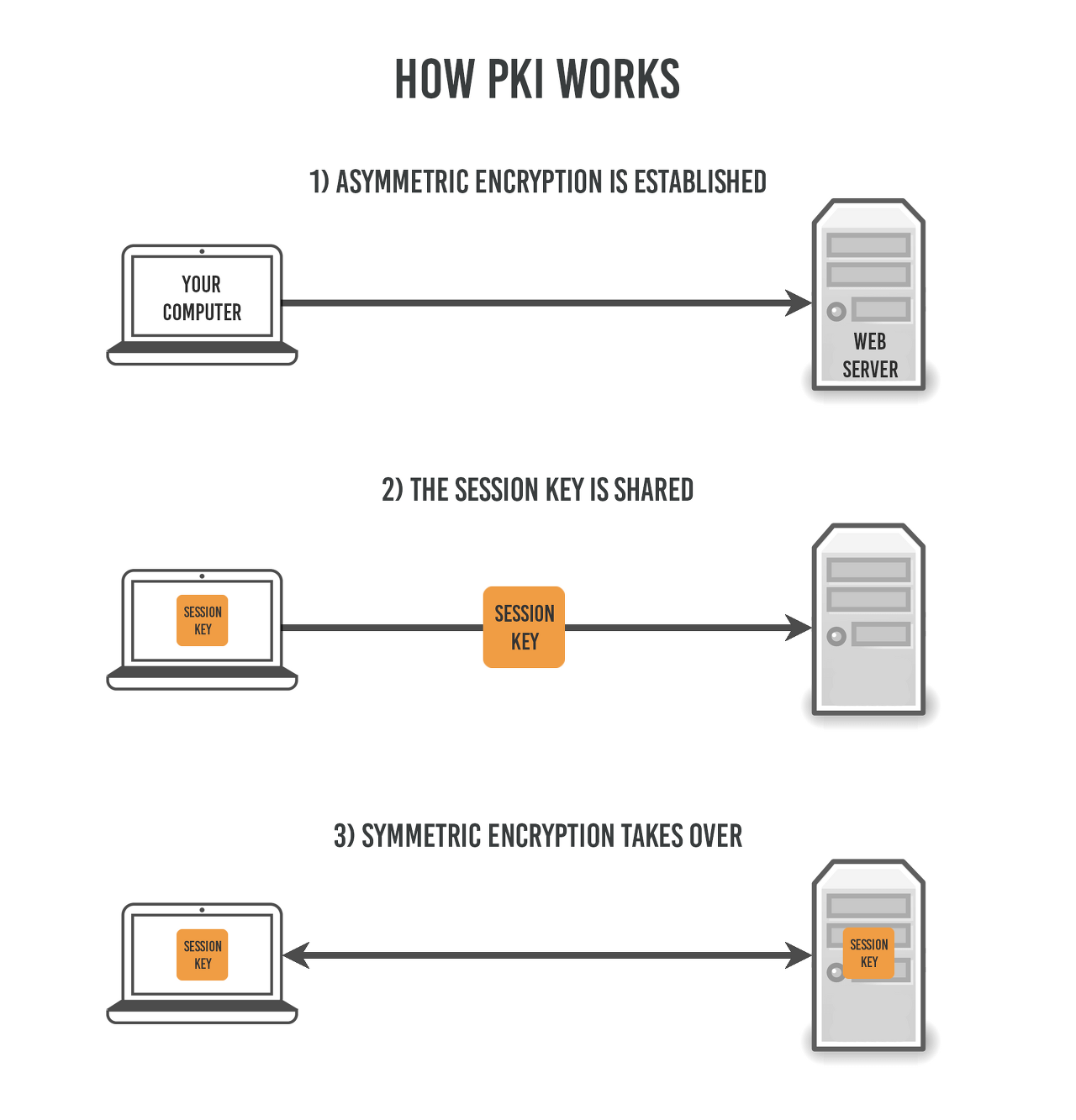 따라서 이 과정에서는 비대칭키 암호화를 사용하여 세션키를 공유한다.